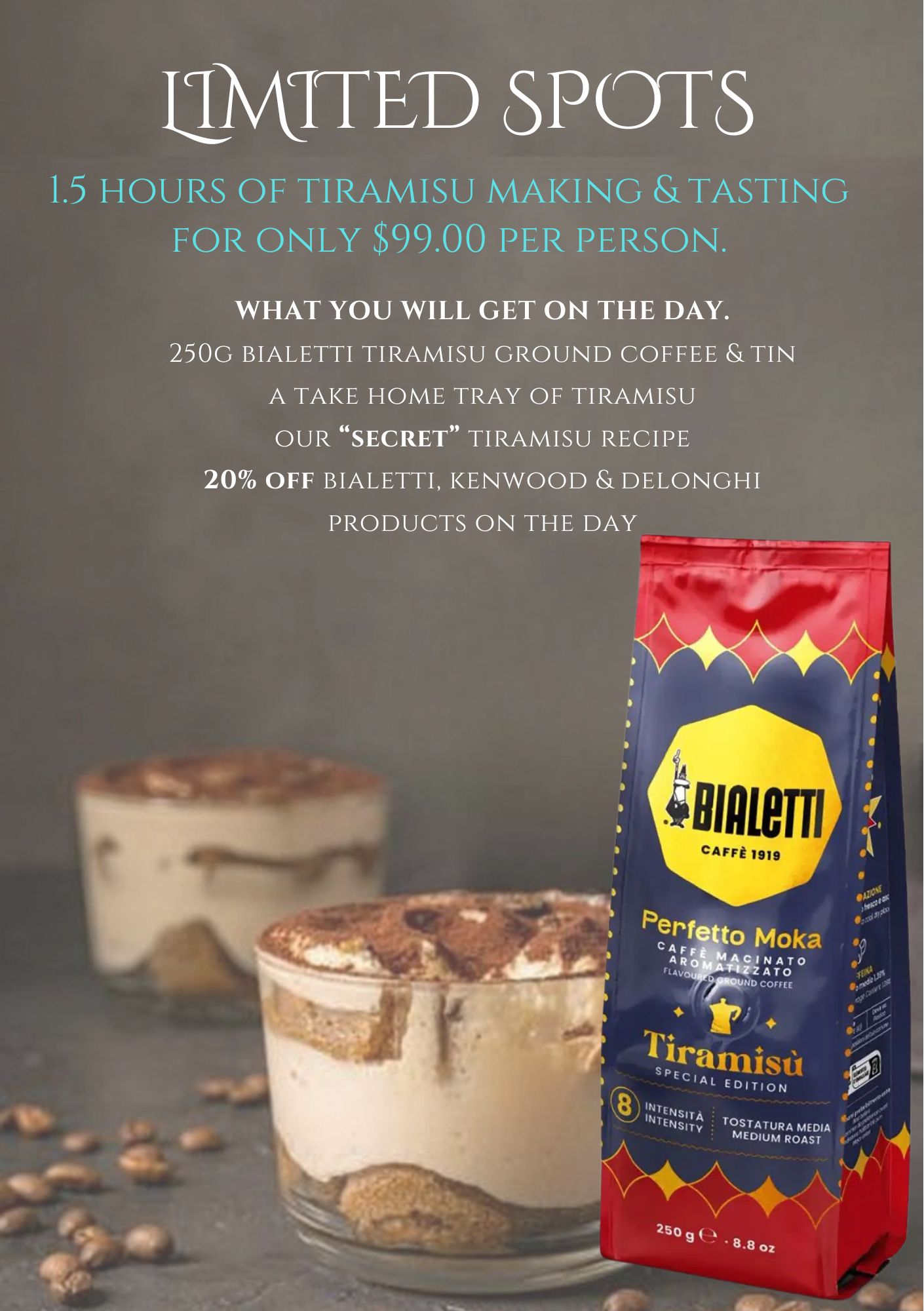 Whether you're a dessert enthusiast or simply looking for a unique and fun experience, our Tiramisu masterclass promises an unforgettable time filled with flavor and joy.