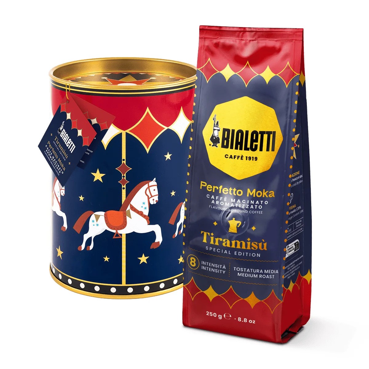 - Bialetti Magico Ricordo Gift Tin & Perfetto Moka Tiramisu Ground Coffee 250g